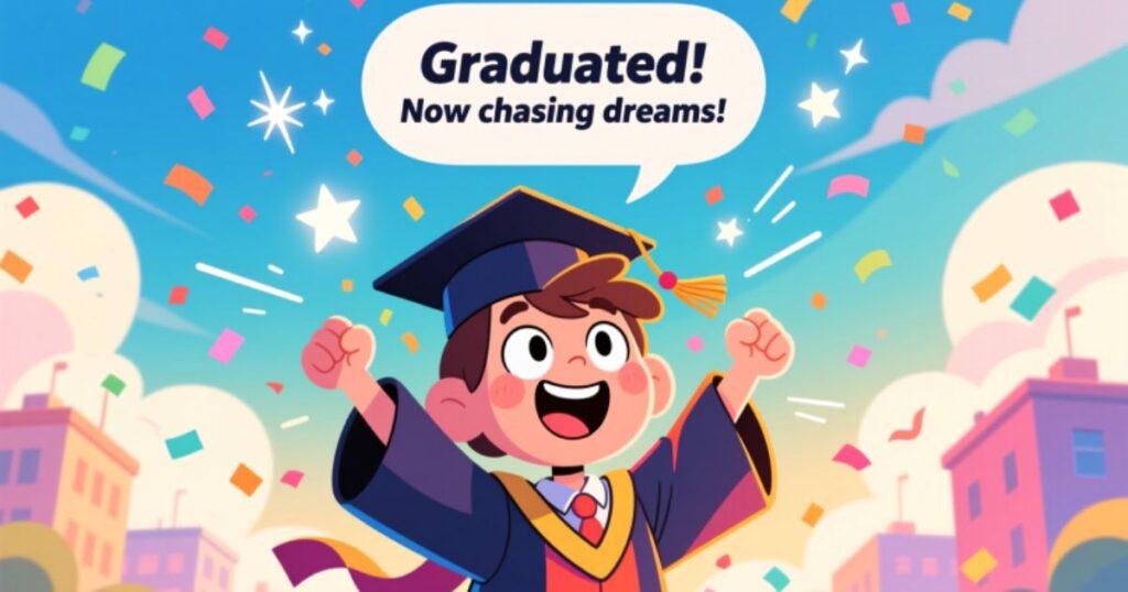 - “Graduated! Now I can nap without guilt anytime 😴✨”