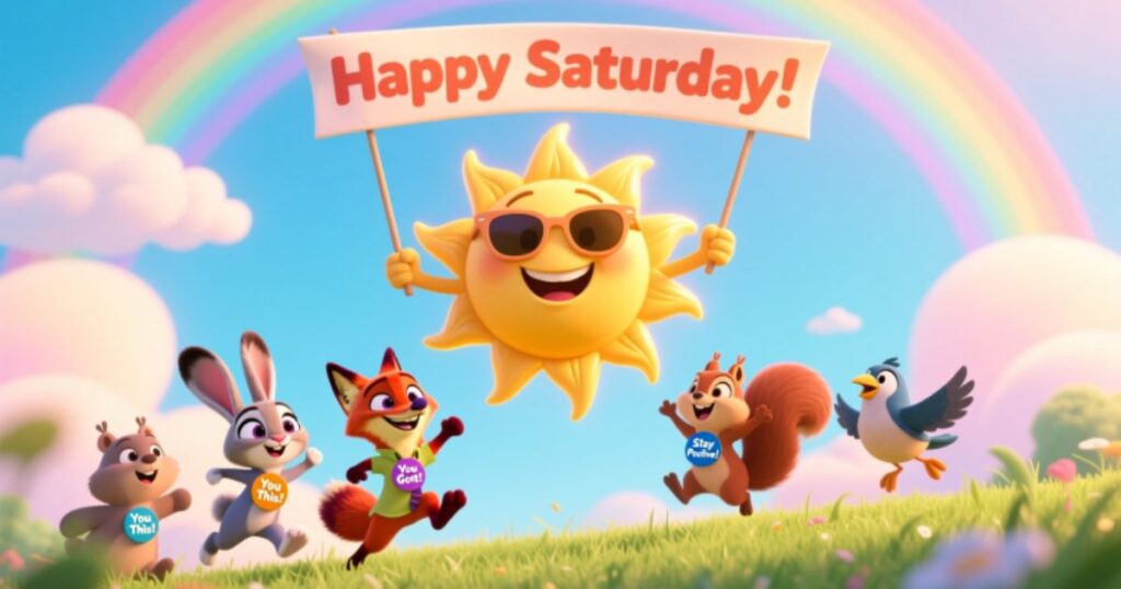 - Good morning! May your Saturday be cheerful, positive, and full of cute moments that bring happiness, warmth, and peace to your heart, creating a delightful weekend fully today.